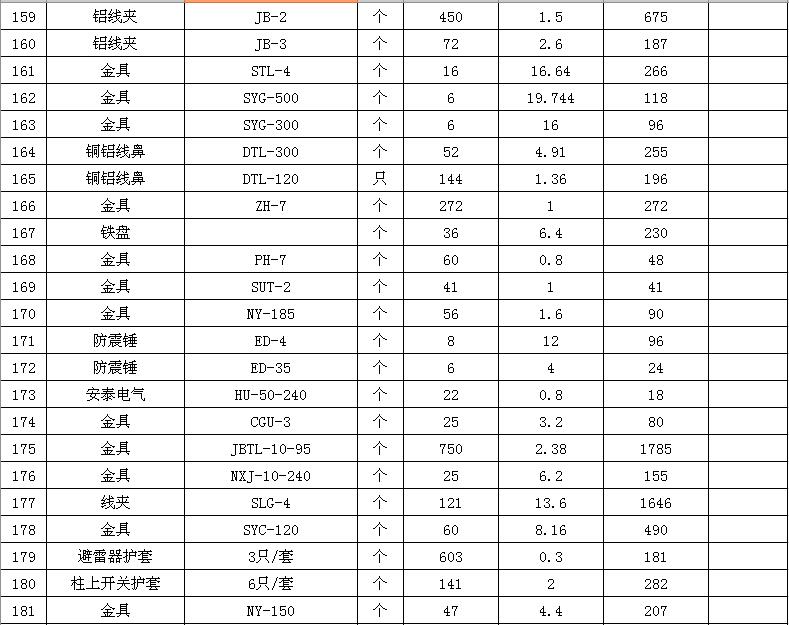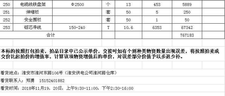 淮陰力源電力實業(yè)開發(fā)有限公司廢舊物資拍賣參考明細表
