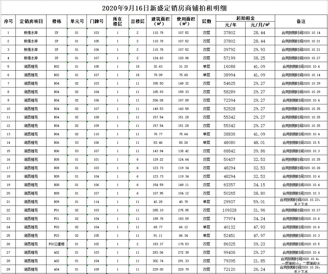 關(guān)注微信公眾號我公司受委托,定于2020年9月16日9:30在徐州云泉山莊第七會議室公開拍租以下社區(qū)房屋:楓情水岸、湖西雅苑、嘉和雅苑、祥云路街坊中心二層等。拍租房屋共39處,商鋪面積分別約為數(shù)十至數(shù)百平米,祥云路街坊中心二層約2490平米。社區(qū)商鋪租期三年,祥云路街坊中心二層辦公房租期五年。詳情請登錄本公司網(wǎng)站或微信公眾號查詢。