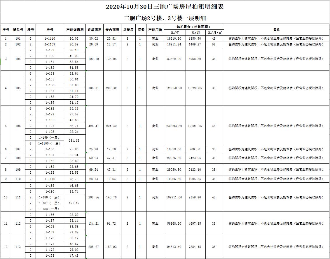 關(guān)注微信公眾號(hào)我公司受委托,定于2020年10月30日10時(shí)在徐州中山南路55號(hào)本公司三樓拍賣廳公開拍租:三胞廣場(chǎng)2號(hào)樓、3號(hào)樓1層、3層等部分商鋪及辦公房,面積分別約為數(shù)十至數(shù)百平米,租期3-5年。禁止從事危險(xiǎn)品、有污染及擾民的行業(yè)經(jīng)營(yíng)。