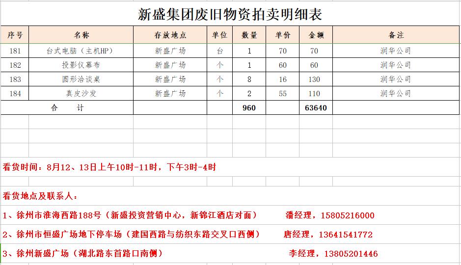 2、新盛集團廢舊電腦、空調(diào)、復印機、廚浴設備、健身器材、辦公家具等物資。(保證金2萬元)