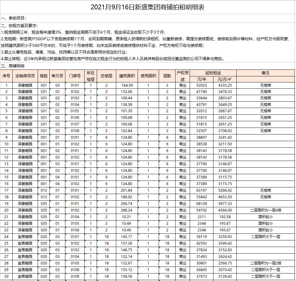 關(guān)注微信公眾號我公司受委托,定于2021年9月16日9:30時在徐州市中山南路55號本公司拍賣廳公開拍租以下商鋪:澤惠嘉園23間、宜居嘉園21間、和風雅致7間。面積分別約為數(shù)十至三百余平米不等,租期均為三年。
